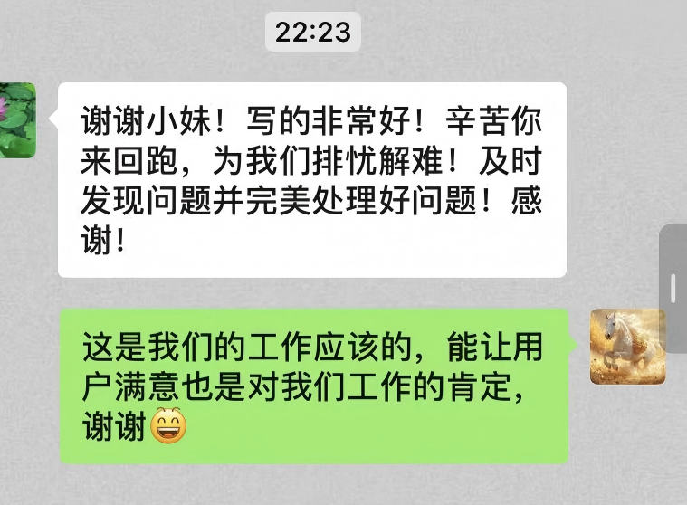這位用戶(hù)表示,要將隨州水務(wù)員工的專(zhuān)業(yè)與熱情分享給身邊人,直言“你們工作時(shí)熱情的態(tài)度值得我們學(xué)習(xí)”。面對(duì)用戶(hù)的盛贊,網(wǎng)格員一句“你再表?yè)P(yáng)我就要飄了”的俏皮回應(yīng),讓這場(chǎng)服務(wù)與被服務(wù)的互動(dòng)更添溫情。